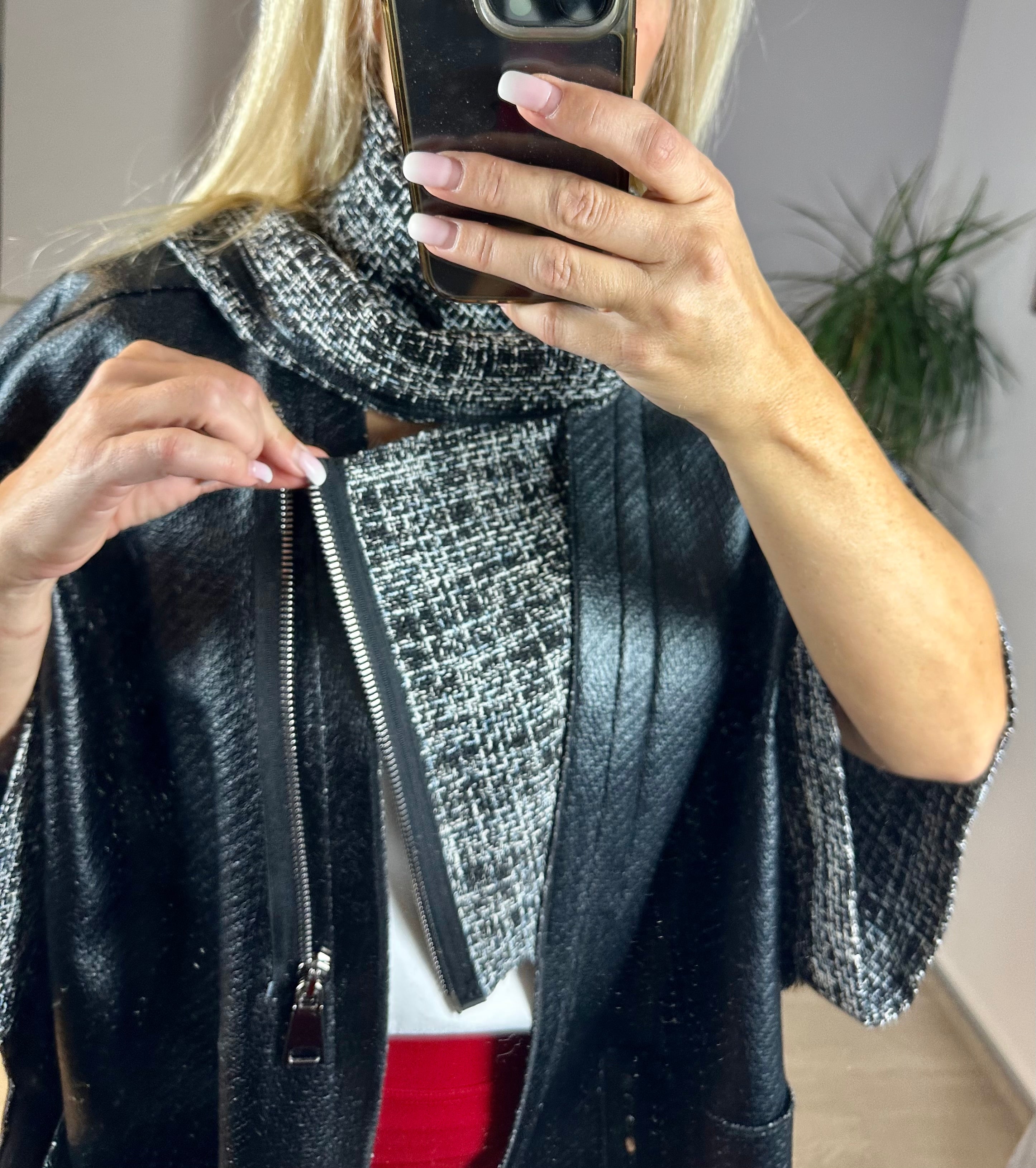 Jacket μαύρο δερματίνη με ύφασμα γκρί